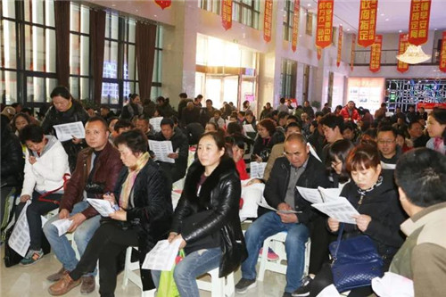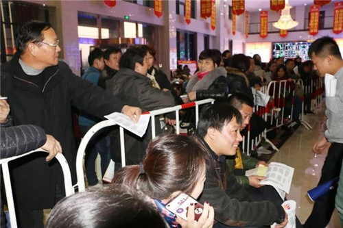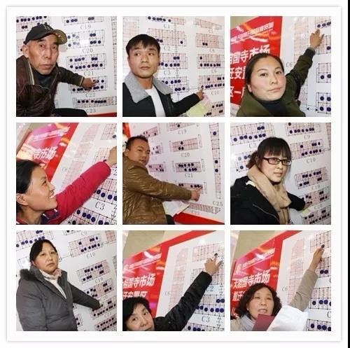 选铺现场人山人海,热闹非凡,大家都在认真的看着铺位图纸,用笔勾划出自己喜爱的位置。