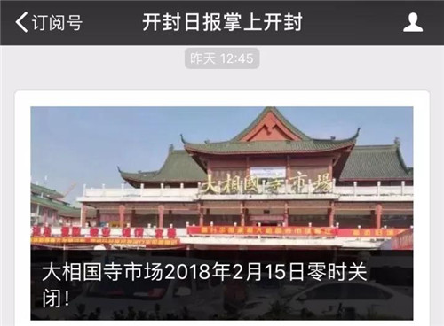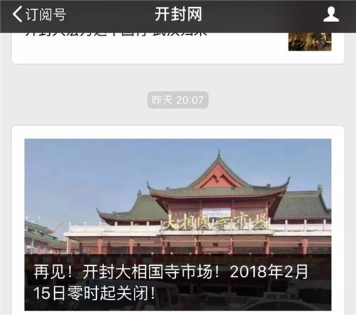 11月24日下午,鼓楼区政府关于大相国寺市场搬迁公告正式贴出,开封大相国寺市场将在2017年2月15日零时关闭。